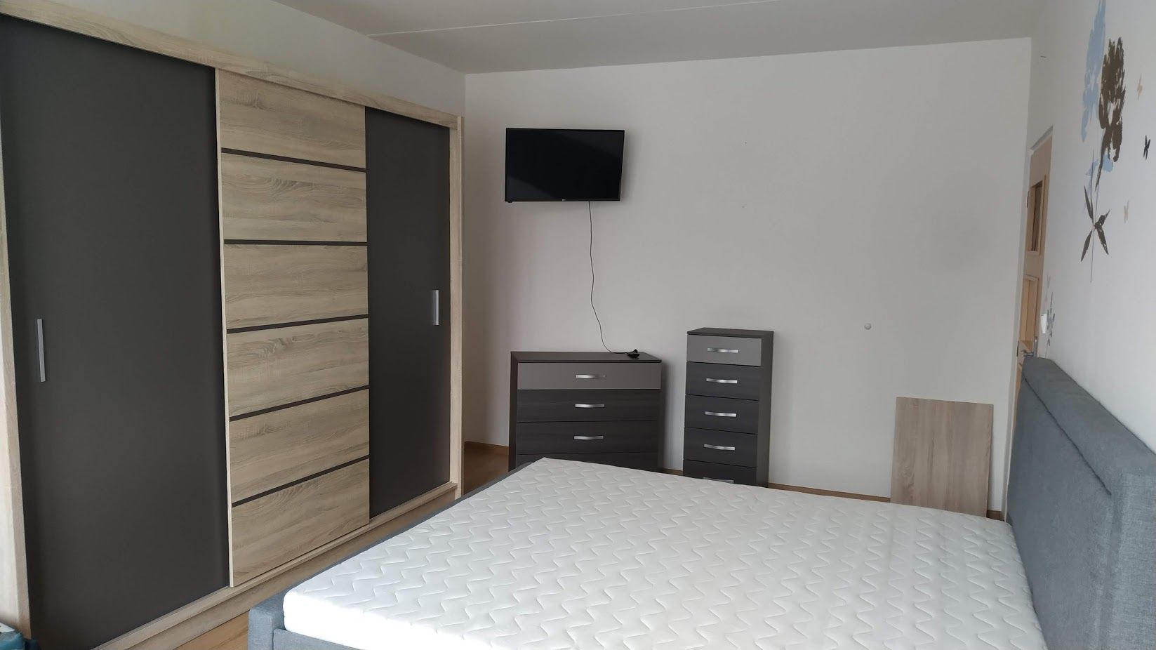 Zařízení bytu: 1x velký televizor obývací pokoj, 1x menší nástěnný televizor ložnice, přípojka na internet, manželská postel, sedací souprava, moderní nábytek ve všech místnostech, posezení na balkoně